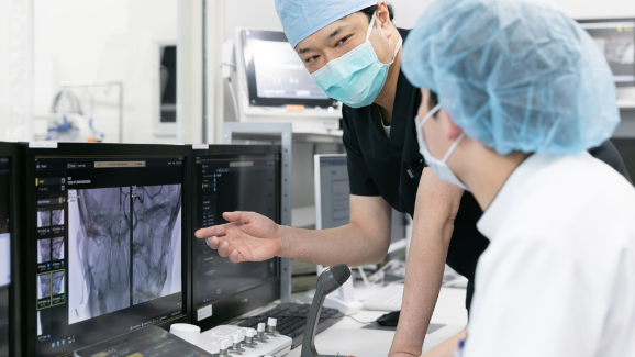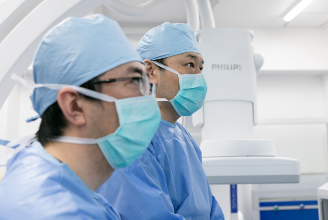 新座志木中央総合病院の脳神経血管内治療科は、2022年4月より本格稼働を開始したばかりですが、昭和大学脳神経外科にてカテーテルチームを率いてきた奥村浩隆部長と同サブリーダーであった桑島淳氏副部長、三井記念病院から加入した田中遼医師の3人で治療をおこなっております。また、2023年からは、さらに2名の脳血管を専門とする医師が加入し、脳血管内治療に専従する医師が5名となっております。